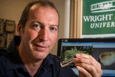 Wright State biology professor Don Cipollini finds emerald ash borer larvae in olive trees
