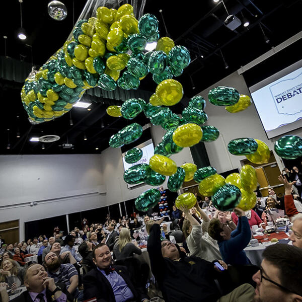 About 600 Wright State staff, faculty, students, administrators and others filled the Student Union Apollo Room on March 1 to attend the Debate Launch event.