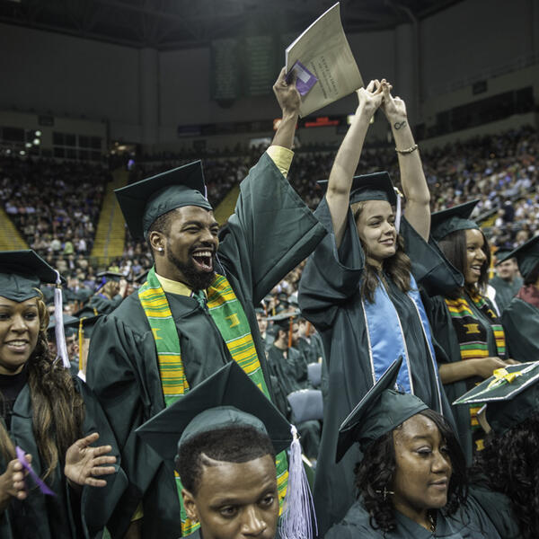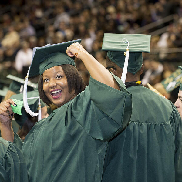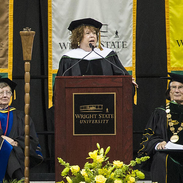 Graduating Wright State students were praised as a special group who believe in standing up for others and urged to work for peace during fall commencement at the Nutter Center on Dec. 19.