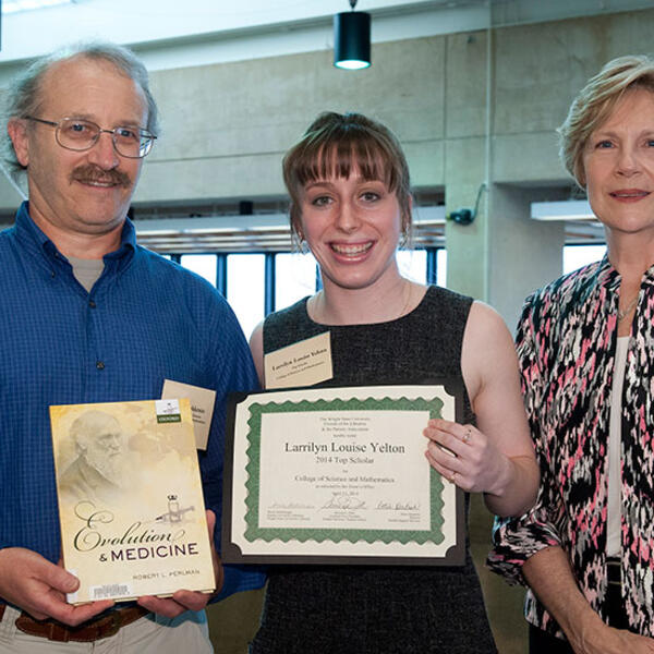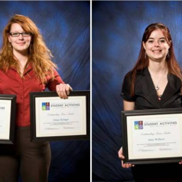 Two Chemistry students were recipients of Wright State University's Outstanding Student Leaders Awards, April 17, 2014, at a Student Recognition Reception organized by the Office of Student Activities. Grace Klinger, received the Advanced Student Leader and Outstanding Senior Leader Awards.