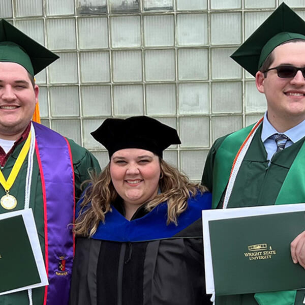 Wright State's spring commencement ceremonies were three times as special for the Ward family, who celebrated the graduation of siblings Melissa, Jacob and Joshua.