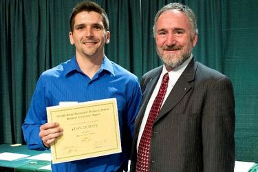 Kevin Dorney received the Graduate Excellence Award from Dr.Robert E. W. Fyffe, Vice-President of Research and Graduate Studies, on April 16, 2014 in recognition of his achievements in the Chemistry Department's Master's Program.