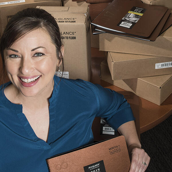 Sarah Cicora, an academic adviser in the Department of Psychology, helped secure a donation from ACCO brands of 951 calendars for students taking first-year seminars at Wright State this fall.