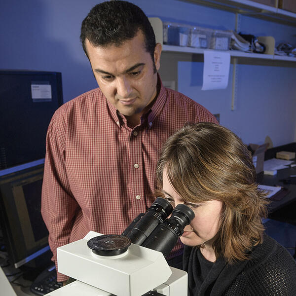 Marquise Crosby, a senior biochemistry and molecular biology major, works as a lab assistant at Wright-Patterson in the Soft Matter Branch of the Air Force Research Laboratory’s Materials and Manufacturing Directorate.